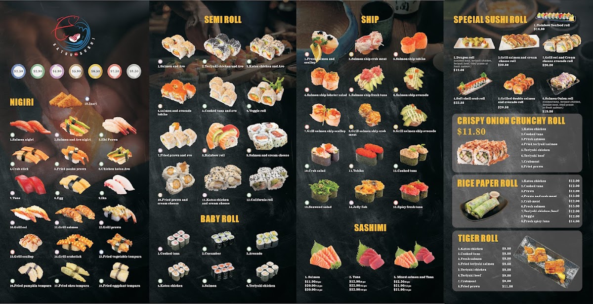 Standout menu highlights include the diverse platters designed for sharing — especially the Family Set and Sunflower Platter — which deliver generous assortments of sashimi, nigiri, and rolls. The semi-rolls offer unique flavor combinations like Fried Prawn and Avocado or Teriyaki Chicken, perfect for both sushi novices and aficionados. The approachable pricing makes it an ideal spot for casual lunches or family dinners. Customer favorites such as the dragon roll and tempura eggplant reflect the kitchen’s commitment to quality and taste, making Katsu Sushi Train a beloved local gem.
